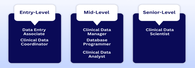 •  Clinical Data Management roles are generally structured by increasing levels of responsibility, scope, and strategic oversight.