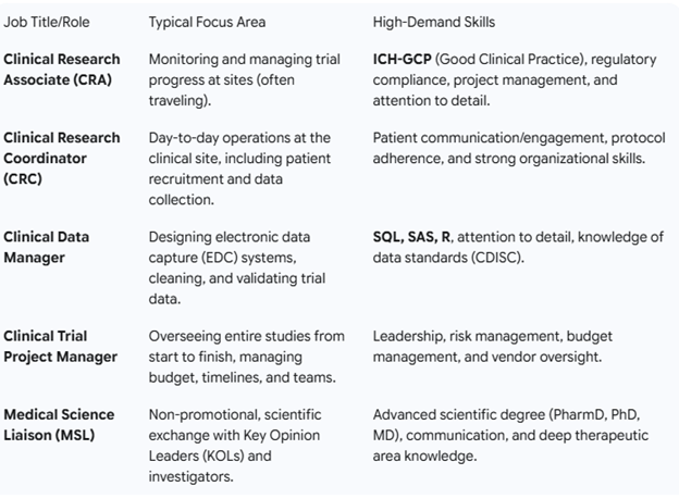 • Diverse Career Paths: The field has a well-defined career ladder with multiple specialty options. You can start in roles like a Clinical Research Coordinator (CRC) or Clinical Trial Assistant (CTA) and progress into high-level positions such as